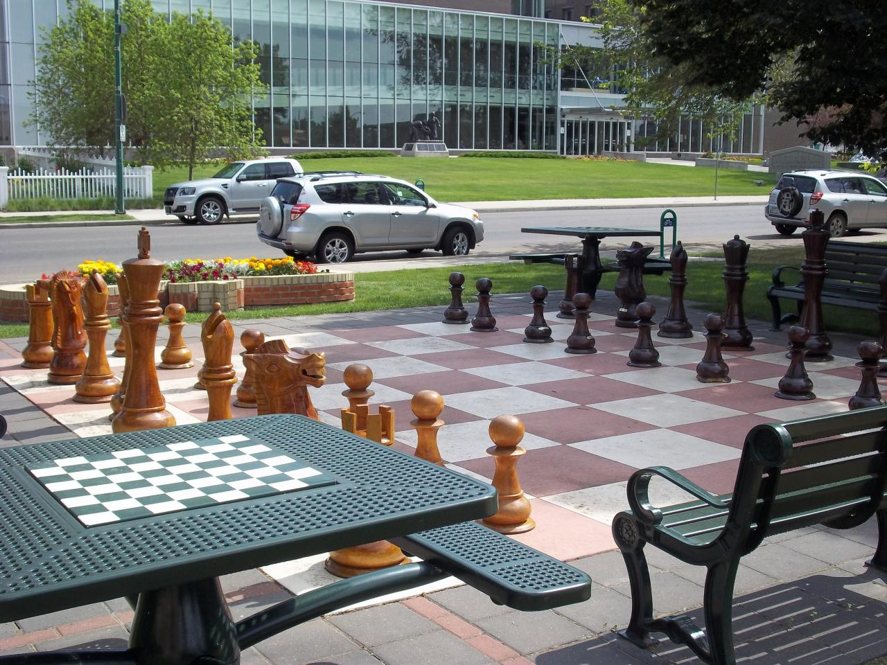This larger-than-life game was conceptualized and created by Dr. Bill Taylor and the Medicine Hat Chess Club. It was designed to promote chess as a fun, inclusive activity, the set adds a playful touch to the city’s downtown core while attracting both tourists and locals.